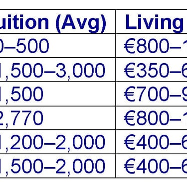 Living expenses vary by country and city. Eastern European nations like Poland and Hungary are significantly cheaper than Western counterparts like France or Germany.