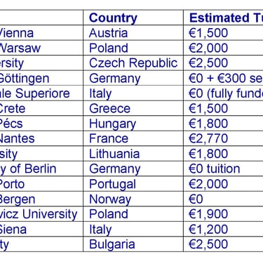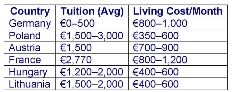 Poland and Hungary are among the most budget-friendly for both tuition and living.