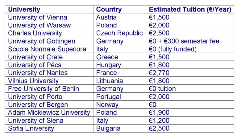 While some countries offer free tuition (like Germany and Norway), others have low annual fees ranging from €1,000 to €5,000. Public universities are generally more affordable than private ones.