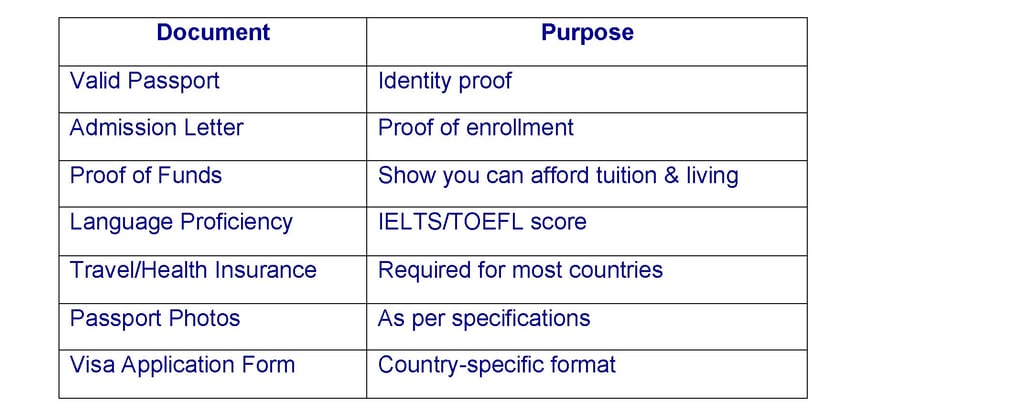 Documents Required for a Student Visa