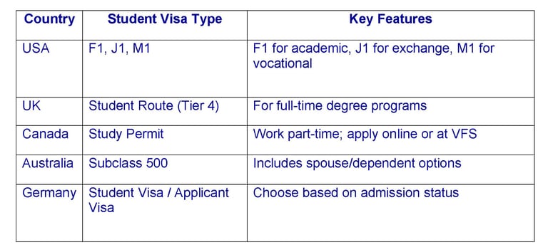 Types of Student Visas by Country